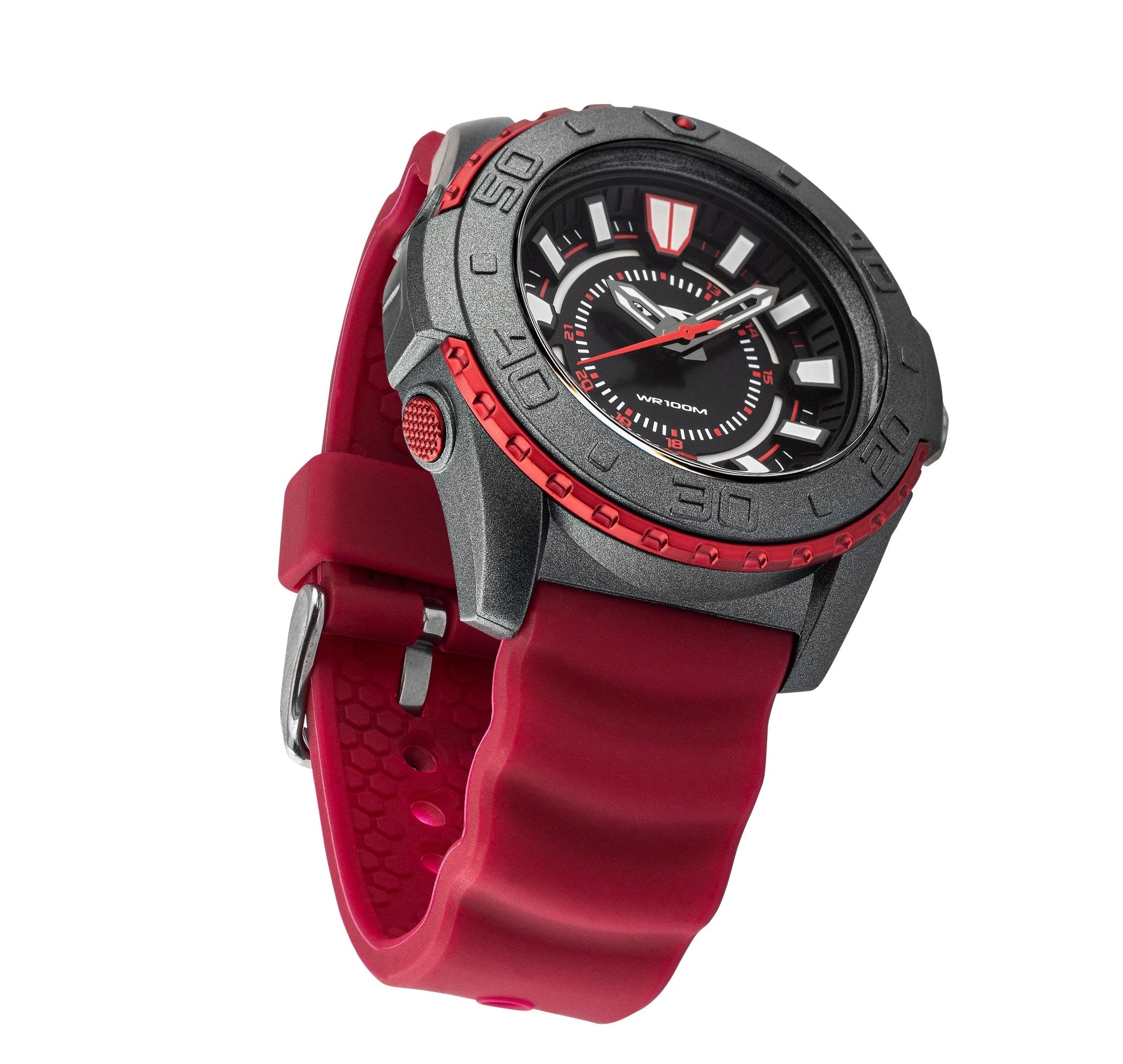 ציפוי גוף השעון: פלסטיק מושחר ואדום